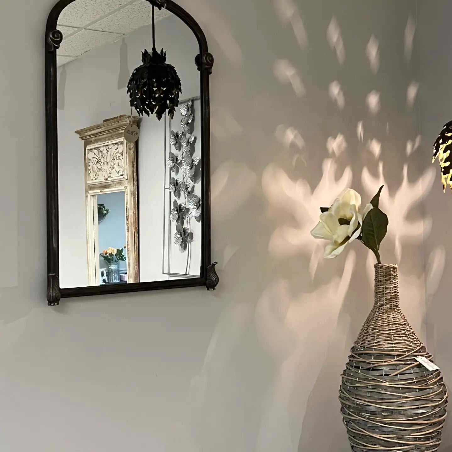 This stunning wall mirror is perfect for adding a touch of a farmhouse charm to any living room, bedroom or entryway.